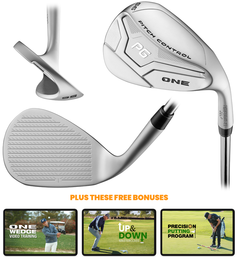 This is the FIRST and ONLY wedge with Pitch Control Technology… where every single feature is working together to accelerate your club through using ONE swing, ONE tempo, and ONE shot… so you’ll never miss a pitch again.
