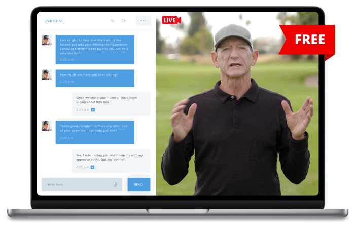 Ask Tiger Woods’ former coach Hank Haney any question LIVE and get immediate feedback designed to help fix your slice even faster. If you miss the live stream, you’ll have access to the replay for life.