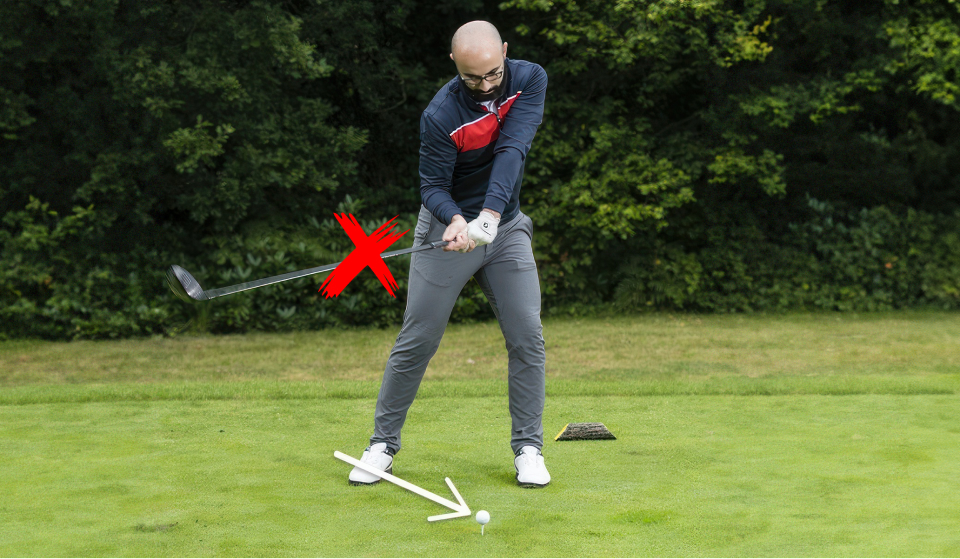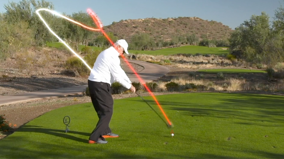 An outside-in swing path makes you cut across the ball and hit the “outside” of the golf ball.