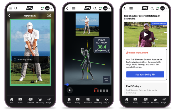 This revolutionary new AI swing coach uses your cell phone camera to read  17 data points in your swing… Identifies your 4 biggest swing flaws in order of importance… And gives you customized drills and techniques to improve those flaws one at a time.